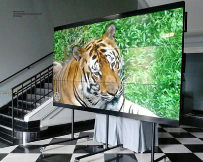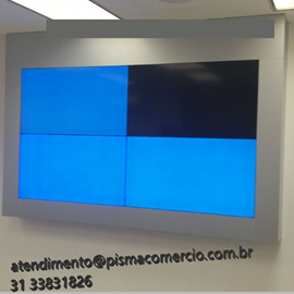 Pedestal para vídeo wall, modular e permitindo montagem simultânea de vários monitores, configurando montagens em padrões 2x2 - 3x3 - 4x4, ajustes precisos e de fácil montagem.