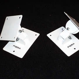 Suportes para caixas de som, com regulagens horizontal e vertical, acabamento em pintura eletrostática de alta resistência Proporciona ajuste perfeito do campo acústico.